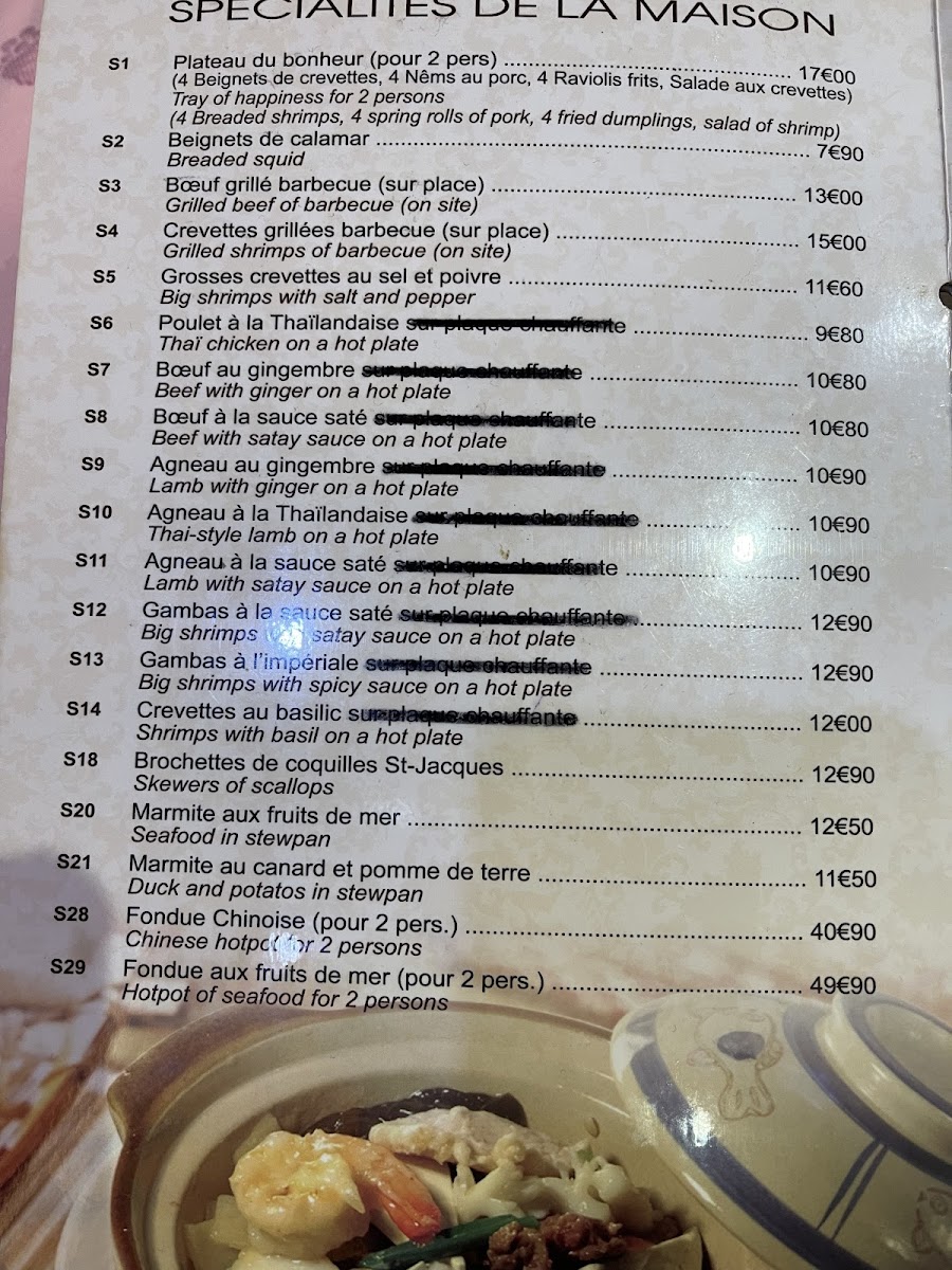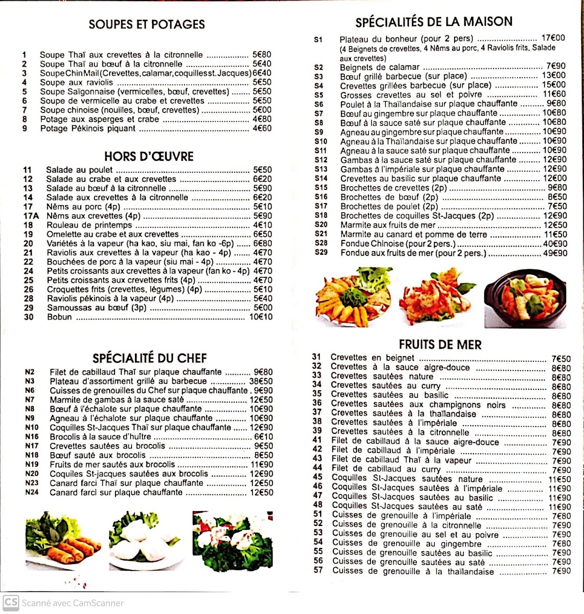 Top service and very good food. The manager is interested in customers and talks with them. Fast service. There is a choice of 3 menus including a starter, a main course and a dessert to choose from several options. I had shrimp ravioli as a starter, shrimp with spicy basil sauce and Thai rice with shrimp as a main course and for dessert I had two scoops of ice cream. My friends chose spring rolls and shrimp ravioli soup as starters. They were very satisfied just like me. Thank you for the welcome. PS: I want to say that I am not particularly a fan of Chinese cuisine but this restaurant reconciled me with this cuisine!